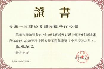 一汽监理荣获2020年度吉林省先进工程监理企业称号